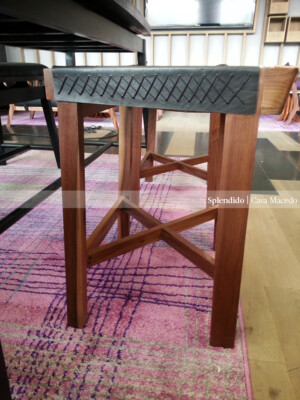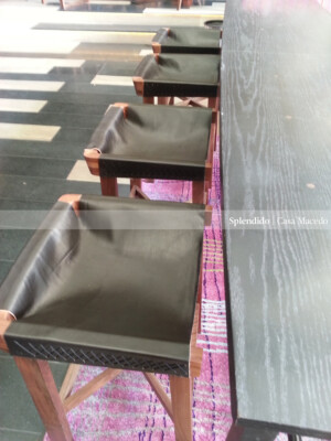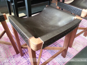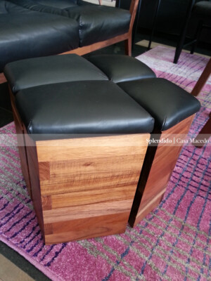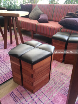 Taburete fabricado en cuatro piezas para hacer notar plenamente las divisiones. Se usó Piel 100% Vacuno.