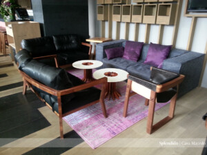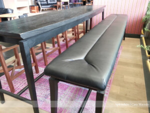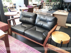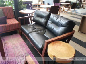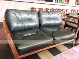 Banca tipo love seat, cojines fabricados en Piel 100% Vacuno color negro, rellenos combinados en materiales totalmente firmes y suaves para dar mayor durabilidad y comodidad.